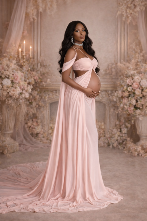 Our gowns are designed with stretch fabrics to flatter maternity curves beautifully.